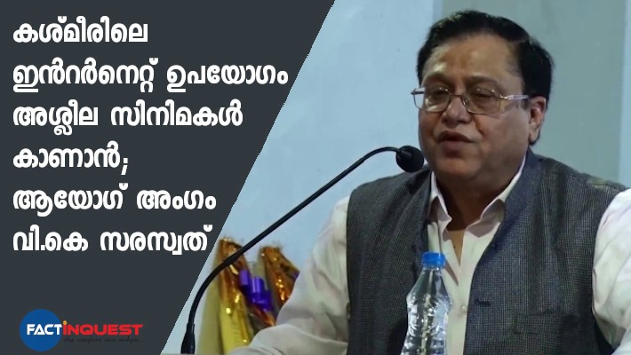 കശ്​മീരിലെ ഇന്‍റര്‍നെറ്റ്​ ഉപയോഗം​ അശ്ലീല സിനിമകള്‍ കാണാൻ; ആയോഗ് അംഗം വി.കെ സരസ്വത്