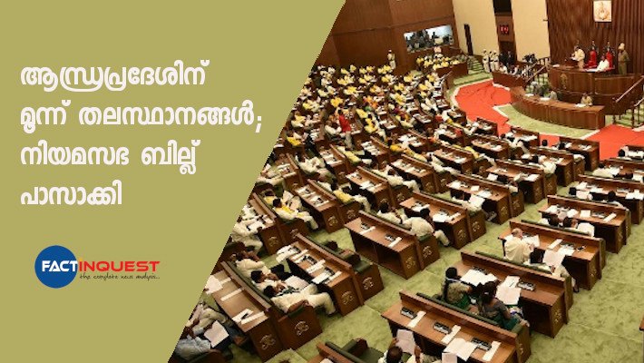 ആന്ധ്രപ്രദേശിന് മൂന്ന് തലസ്ഥാനങ്ങൾ കൊണ്ടുവരാനുള്ള ബില്ല് നിയമസഭ പാസാക്കി. ടിഡിപി അംഗങ്ങൾ ബഹിഷ്കരിച്ചതിനെ തുടർന്ന് ശബ്ദ വോട്ടെടുപ്പിലൂടെയാണ് ബില്ല് പാസാക്കിയത്. വിശാഖപട്ടണം, അമരാവതി, കുർണൂൽ എന്നിവയായിരിക്കും ഇനി ആന്ധ്രപ്രദേശിന്റെ തലസ്ഥാനങ്ങളാകുന്നത് .