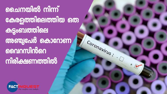കൊറോണ വെെറസ് പടരുന്ന സാഹചര്യത്തിൽ ചൈനയില് നിന്നെത്തിയ പേരാവൂർ സ്വദേശികൾ നിരീക്ഷണത്തിൽ. ആരോഗ്യവകുപ്പ് ഇവർക്ക് മുന്നറിയിപ്പ് നൽകി. ഒരു കുടുംബത്തിലെ അഞ്ചു പേരാണ് ചൈനയില് നിന്ന് കൊല്ക്കത്ത എയര്പോര്ട്ട് വഴി കഴിഞ്ഞ വെള്ളിയാഴ്ച നാട്ടിലെത്തിയത്.