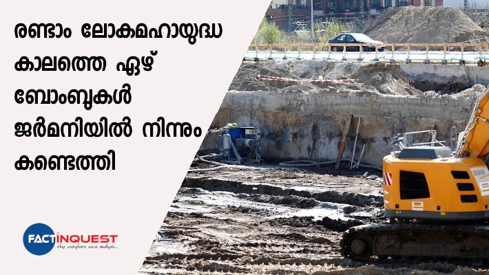 ജർമനിയിൽ രണ്ടാം ലോകമഹായുദ്ധ കാലത്തെ ഏഴ് ബോംബുകൾ കണ്ടെത്തി. നിർമാണ പ്രവർത്തനങ്ങൾ നടക്കുന്നതിനിടയിലാണ് ബോംബുകൾ കണ്ടെത്തിയത്. ഇവ നിർവീര്യമാക്കുകയും ചെയ്തു.