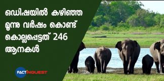 ഒഡിഷയിൽ കഴിഞ്ഞ മൂന്നു വർഷം കൊണ്ട് കൊല്ലപ്പെട്ടത് 246 ആനകൾ