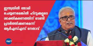 ഇന്ത്യയിൽ ജോലി ചെയ്യണമെങ്കിൽ ഹിന്ദുക്കളുടെ ശാക്തീകരണത്തിന് വേണ്ടി പ്രവർത്തിക്കണമെന്ന് ആർഎസ്എസ് നേതാവ്