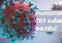 സംസ്ഥാനത്ത് 1169 പേര്ക്ക് കൊവിഡ്