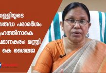 മുല്ലപ്പള്ളിയുടെ സ്ത്രീവിരുദ്ധ പരാമര്ശം സമൂഹത്തിനാകെ അപമാനകരം: മന്ത്രി കെ കെ ശൈലജ