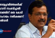 കോവിഡ് 19: ആരോഗ്യപ്രവര്ത്തകര്ക്ക് ജീവഹാനി സംഭവിച്ചാല് ഒരു കോടി ധനസഹായം നല്കുമെന്ന് കെജരിവാള്