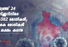 രാജ്യത്ത് 24 മണിക്കൂറിനിടെ 43,082 രോഗികള്; ആകെ രോഗികള് 93 ലക്ഷം കടന്നു